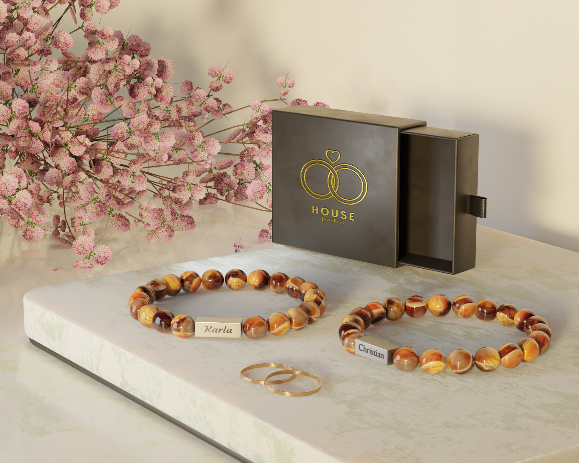Ob die Namen eurer Liebsten, ein besonderes Datum oder der Ort eures Kennenlernens – gestalte ein einzigartiges Armband, das eure gemeinsame Geschichte erzählt und garantiert für Gänsehaut sorgt.