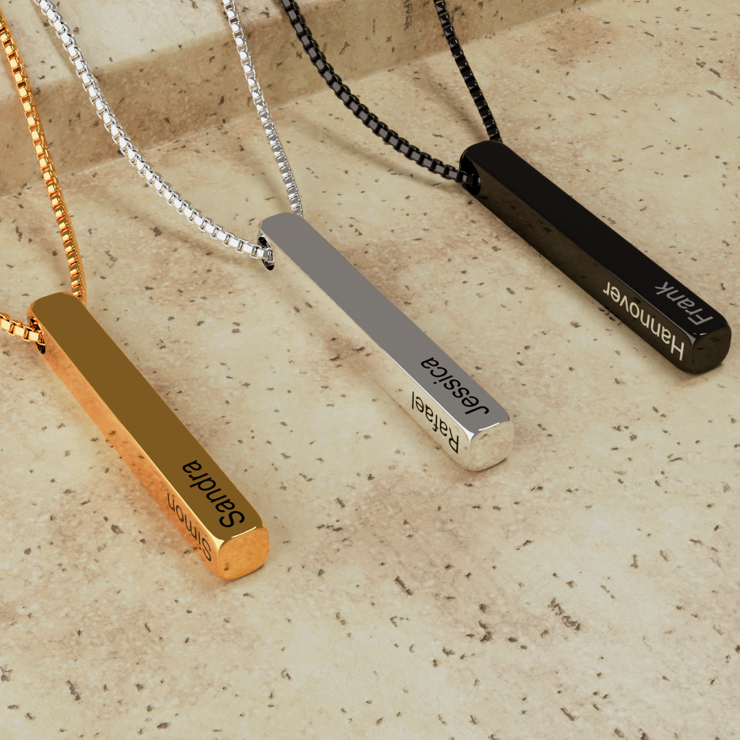 Überrasche deinen Mann, deine Frau oder dich selbst mit einer Halskette, die mehr sagt als tausend Worte. Dieser elegante 3D-Bar-Anhänger ist ein zeitloses Unisex-Schmuckstück – perfekt für Männer und Frauen geeignet.